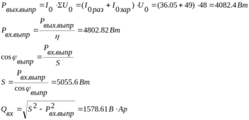 Определяем активную и реактивную составляющие мощности потребления от сети переменного тока.