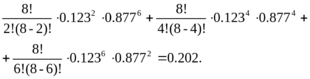 Рно = С28Рош2(1-Рош)8-2 + С48Рош4(1-Рош)8-4 + С68Рош6(1-Рош)8-6 =