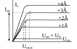 При номинальном токе через транзистор напряжение насыщения стока Uсин = Uо.