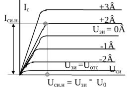 Как только напряжение на стоке достигнет значения насыщения Uсн, ток стока становится функцией лишь напряжения на затворе