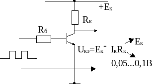 Рис. 4.1. Транзистор в режиме ключа: а схема ключа; б передаточная характеристика электронных инвертирующих схем