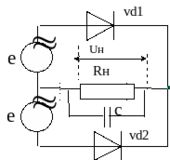 Вентиль это прибор, имеющий несимметричную характеристику проводимости, малое сопротивление для прямого тока и большое сопротивление для обратного. С помощью вентиля переменное напряжение преобразуется в пульсирующее.