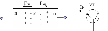 Рис. 2.1. Структура и схемное изображение транзистора n-p-n-типа
