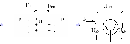 Рис. 2.2. Структура и схемное изображение транзистора p-n-p-типа