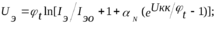 Нормальный активный режим (при Uкб > 0): эмиттерный переход находится под прямым, а коллекторный под обратным напряжением. Для активного режима формулы (2.11) и (2.12) упрощаются, так как при Uк3 t исчезают экспоненциальные составляющие, а если еще пренебречь током Iкб0 и величиной 1-, то эти выражения вообще упрощаются:
