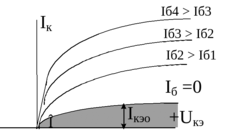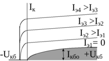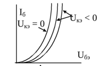 (рис. 2.7, б) выражен сильнее, нежели в схеме с ОБ. Это говорит о том, что сопротивление коллекторного перехода и напряжение пробоя у транзистора в схеме с ОЭ будут значительно меньше, чем в схеме с ОБ. Эту особенность можно объяснить тем, что приращение Uкэ частично падает на эмиттерном переходе, то есть вызывает приращение Uбэ, что неизбежно повлечет за собой увеличение эмиттерного тока и дополнительное приращение коллекторного тока.