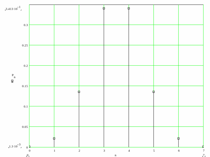 Рис. 5. Закон распределения вероятности на выходе квантователя.
