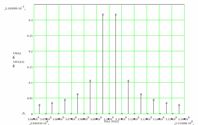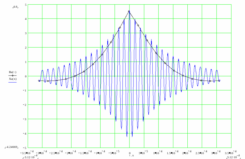 Результаты расчета ФПВ огибающей суммы сведены в таблицу 10., по результатам расчета построен график, рис. 11.