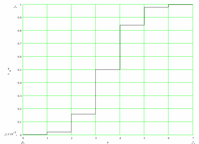 Рис. 6. Интегральная функция распределения вероятностей на выходе квантователя.