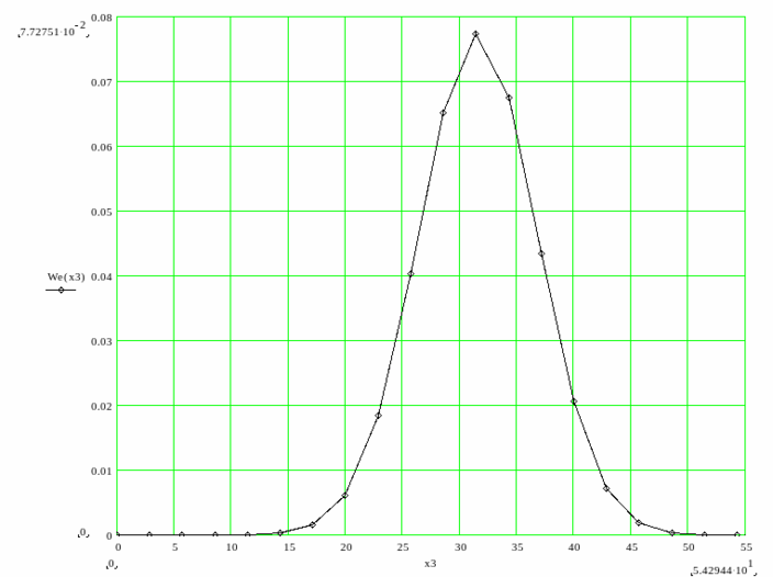 По данным таблицы 12 построим график закона распределения вероятностей на выходе декодера, рис. 14.