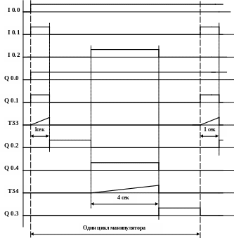T33 – таймер, осуществляющий задержку манип. на месте `А` на 1 сек.;