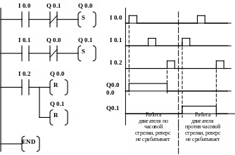 I 0.0 – кнопка включения двигателя по часовой стрелке;