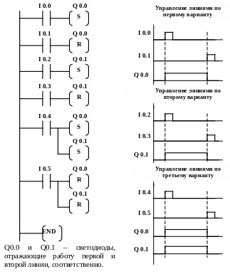 Вариант б): Напишите УП в которой, реверс двигателя через кнопку `Стоп` был бы возможен только с истечением трехсекундной выдержки, а перезапуск в том же направлении осуществлялся без задержки после остановки кнопкой `Стоп`.