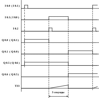 T33 – таймер, осуществляющий задержку реверсирования двигателя.
