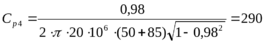 Данный расчет отличается отсутствием выходной емкости источника сигнала поэтому расчет упрощается. Для расчета используем формулы (4.30-4.33). Данные из таблицы для каскада с подъемом в 0 дБ с искажением