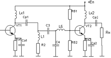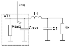 В усилительных каскадах расширение полосы пропускания связано с потерей части выходной мощности в резисторах корректирующих цепей (КЦ) либо цепей обратной связи. От выходных каскадов усилителей требуется, как правило, получение максимально возможной выходной мощности в заданной полосе частот. Из теории усилителей известно, что для выполнения указанного требования необходимо реализовать ощущаемое сопротивление нагрузки для внутреннего генератора транзистора равным постоянной величине во всем рабочем диапазоне частот. Этого можно достигнуть, включив выходную емкость транзистора в фильтр нижних частот, используемый в качестве в