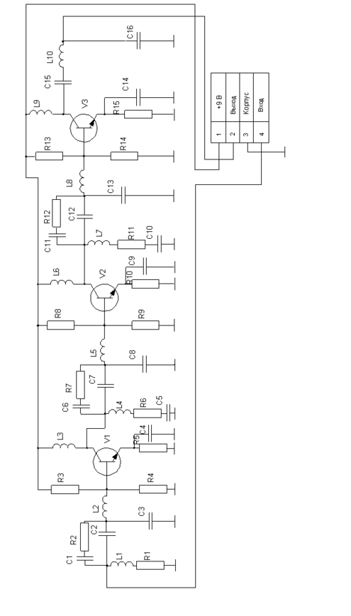 со стороны земли. Дополнительную емкость включим только к оконечному и предоконечному каскаду: