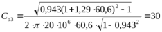 значения элементов L1, R2, C3, C4, L5, соответствующие преобразованной схеме КЦ, в которой значение СВХ2 равно бесконечности; СВЫХ1 – выходная емкость транзистора T1;