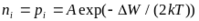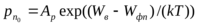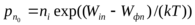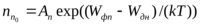 где Wф - уровень Ферми, соответствующий уровню энергии, формальная вероятность заполнения которого равна 0,5 (формальная потому, что уровень Ферми находится в запрещенной зоне и фактически не может быть занят электронами; кривая распределения Ферми-Дирака, характеризующая вероятность нахождения электрона на том или ином энергетическом уровне, всегда симметрична относительно уровня Ферми); WДН - энергия, соответствующая "дну" зоны проводимости; WВ - энергия, соответствующая "потолку" валентной зоны; Аn, Ар - коэффициенты пропорциональности; k - постоянная Больцмана, равная 1,3710-23 Дж/град; Т- абсолютная температура, К. В химически чистых полупроводниках уровень Ферми совпадает с серединой запрещенной зоны Wi, а также Аn = Ар = А. Поэтому можно записать: