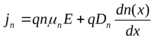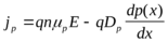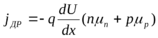 Если в полупроводнике существует и электрическое поле, и градиент концентрации носителей, проходящий ток будет иметь дрейфовую и диффузионную составляющие. В таком случае плотности токов рассчитываются по следующим уравнениям:
