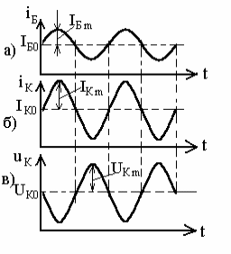 При IБm =0 токи базы и коллектора будут определяться токами в рабочей точке (IБ 0, IК 0)и напряжением на коллекторе UК0= ЕК-IК 0 Rк