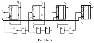 Схема счетчика с параллельным переносом показана на рис 1.1.4.14.