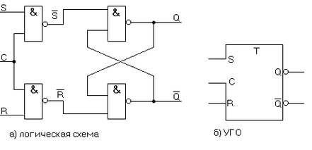 Как видно из таблицы № 2, состояние сигналов на входах S=R=C=1 недопустимо, что обозначено «*» (это является основным недостатком RS-триггеров).