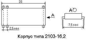 шаг выводов 2,5 мм (изображение корпуса приведено на рисунке ниже);