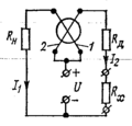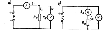 Рис. 4. Измерение сопротивлений вольтметром -и амперметром . |