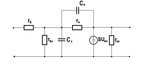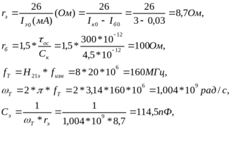 еличины элементов физической эквивалентной схемы транзистора и собственная постоянная времени транзистора определяются соотношениями (упрощёнными):