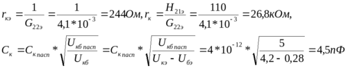 G21э= 0,15 , G22э= 4,1*10 –3 Ом