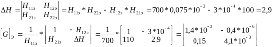 Величины G-параметров в рабочей точке определим путём пересчёта матриц: