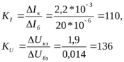 ΔIк= 2,2 мА, ΔUкэ= 1,9 В, ΔIб = 20 мкА, ΔUбэ = 0,014 В