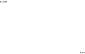 В настоящее время в качестве линии оптического сигнала используется ВОК. Для наших целей, так как сигнал узкополосный может быть использован как многомодовый, так и одномодовый ВОК. Рассмотрим затухание сигнала в этих ВОК. Величина погонного затухания очень сильно зависит от длины волны, применяемой для передачи информации ВОК. На рис. 1.5 приведены графики погонного затухания в зависимости от длины волны для двух типов ВОК.
