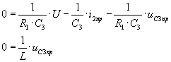 1) Для t≥0 получим систему уравнений метода переменных состояния. Используя законы Кирхгофа, составим систему уравнений:
