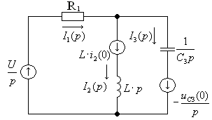 1) Составляется операторная схема замещения исходной электрической цепи (Рис.1) для времени