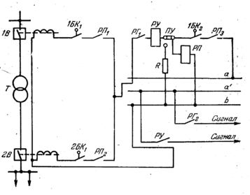 Рис. 2. Защита трансформатора от внешних к. з. и перегрузок.
