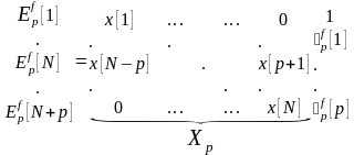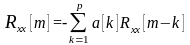 , то АР-параметры можно найти в результате решения последнего матричного соотношения (называемого нормальными уравнениями Юла-Уалкера), где автокорреляционная матрица является и теплицевой, и эрмитовой.