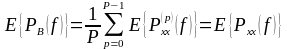 Далее на каждой частоте, представляющей интерес, P отдельных немодифицированных периодограмм усредняются, с тем чтобы получить окончательную оценку: