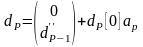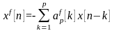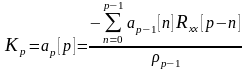 Рекурсивное решение уравнений Юла-Уалкера методом Левинсона связывает АР-параметры порядка p c параметрами порядка p-1 выражением :