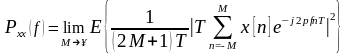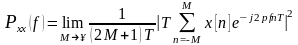 Эта эквивалентная форма спектральной плотности мощности получается посредством статистического усреднения модуля дискретно-временного преобразования Фурье взвешенной совокупности данных, для случая когда число отсчетов данных увеличивается до бесконечности. Статистическое усреднение необходимо здесь потому, что дискретно-временное преобразование само является случайной величиной, изменяющейся для каждой используемой реализации