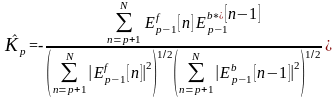 Несложно показать, что коэффициент отражения обладает следующим свойством (является коэффициентом частной корреляции между ошибками линейного предсказания вперед и назад) :