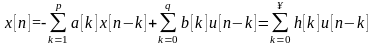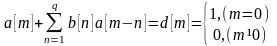 Модель временного ряда (называемая модели авторегрессии-скользящего среднего в случае входной последовательности - белого шума), которая пригодна для аппроксимации многих встречающихся на практике детерминированных и стохастических процессов с дискретным временем, описывается следующим разностным уравнением: