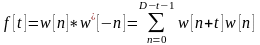 и учитывая, то обстоятельство, что за пределами интервала шириной D отсчетов окно данных тождественно равно нулю, имеем: