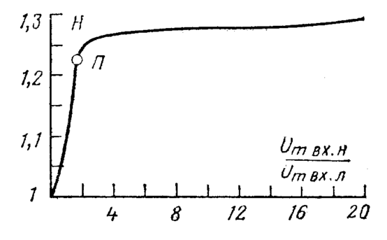 Н(Umвх.н/Umвх.л) – коэффициент, определяемый по рисунку 2.1.3. Он представляет собой часть амплитудной характеристики ограничителя, работающего в нелинейном режиме.