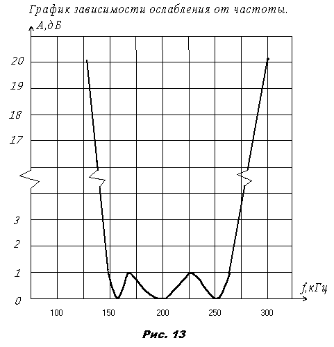 Ослабление фильтра связано с АЧХ выражением:Найдем частоты ПЭП, при которых ослабление (А) и АЧХ принимают минимальные и максимальные значения. Для нахождения соответствующих частот характеристики ПФ используется формула: