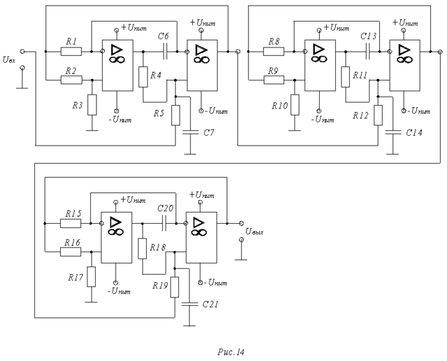 На этом расчет фильтра можно считать законченным на Рис.14 изображена схема рассчитанного фильтра.