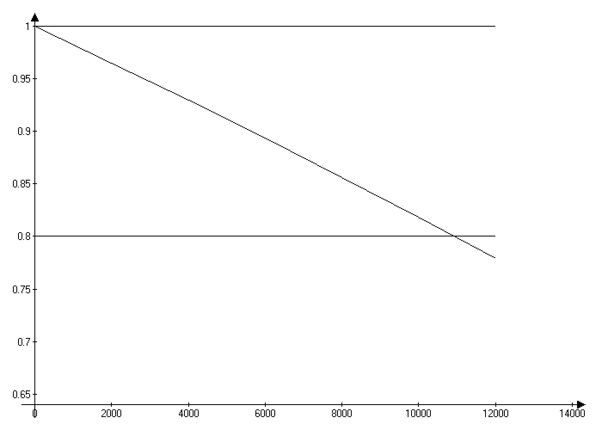 Вероятность безотказной работы определяем для заданного времени 2000, 4000, 6000, 8000, 10000, 12000 по формуле (19)