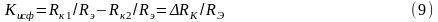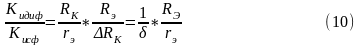 , уменьшить Kисф можно за счет увеличения глубины ООС, т. е. увеличения Rэ. Обычно КООС представляется как отношение модулей Кидиф и Киcф, выраженное в децибелах, т. е. KOOC=201g (Кидиф / Киcф). Раскрыв значения коэффициентов усиления из (6) и (9), можно записать (10):
