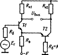 является сопротивлением нагрузки. Формула (7) справедлива при Rэ > Rвхб. Для каскада ОБ, образованного транзистором Т2, коэффициент усиления по напряжению